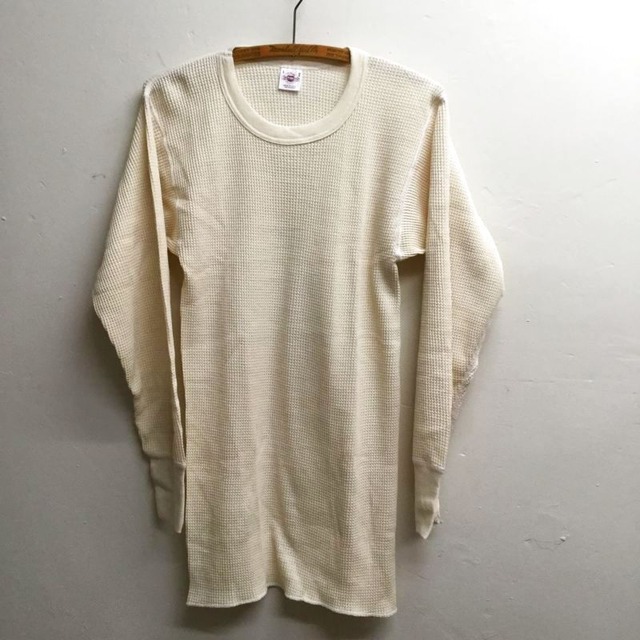 タグなどはありませんが、未使用のサーマルになります。 cottonですので、洗濯すると多少縮むかと思いますが、比較的丈が長く今っぽい1枚になります。 SIZE LARGE 肩幅 39cm 身幅 39cm 着丈 78cm 袖丈 65cm