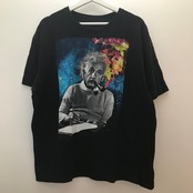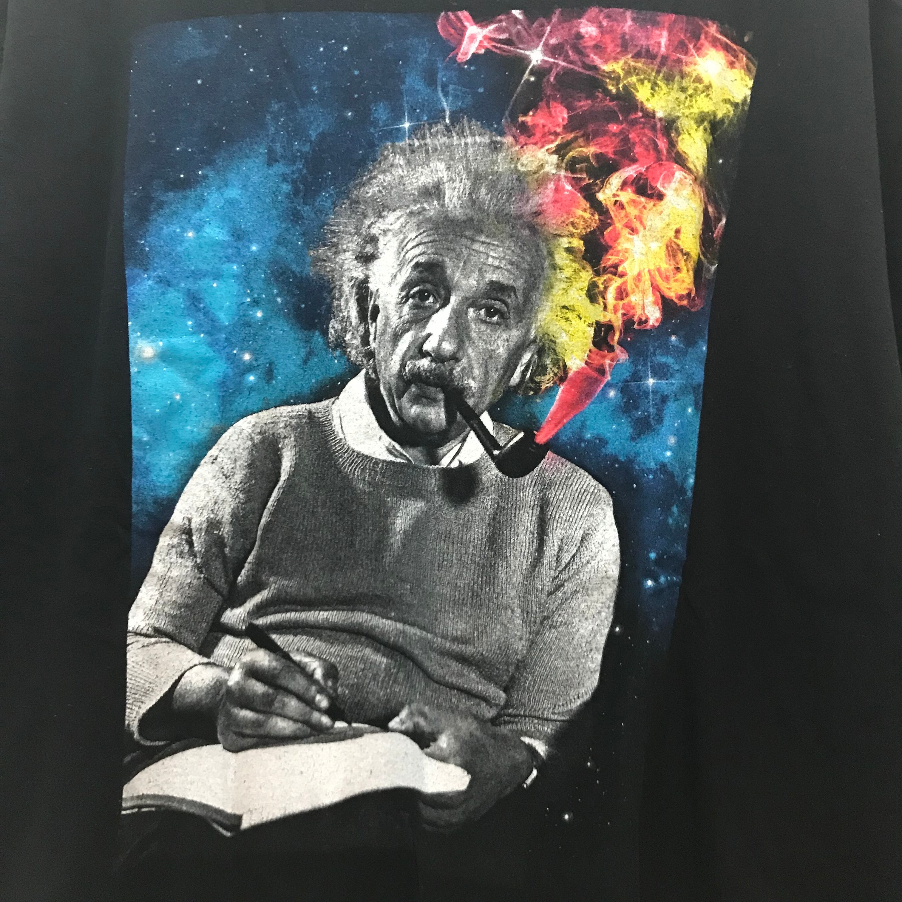 宇宙を背景に何か書いていますが、咥えたパイプから何とも不思議な