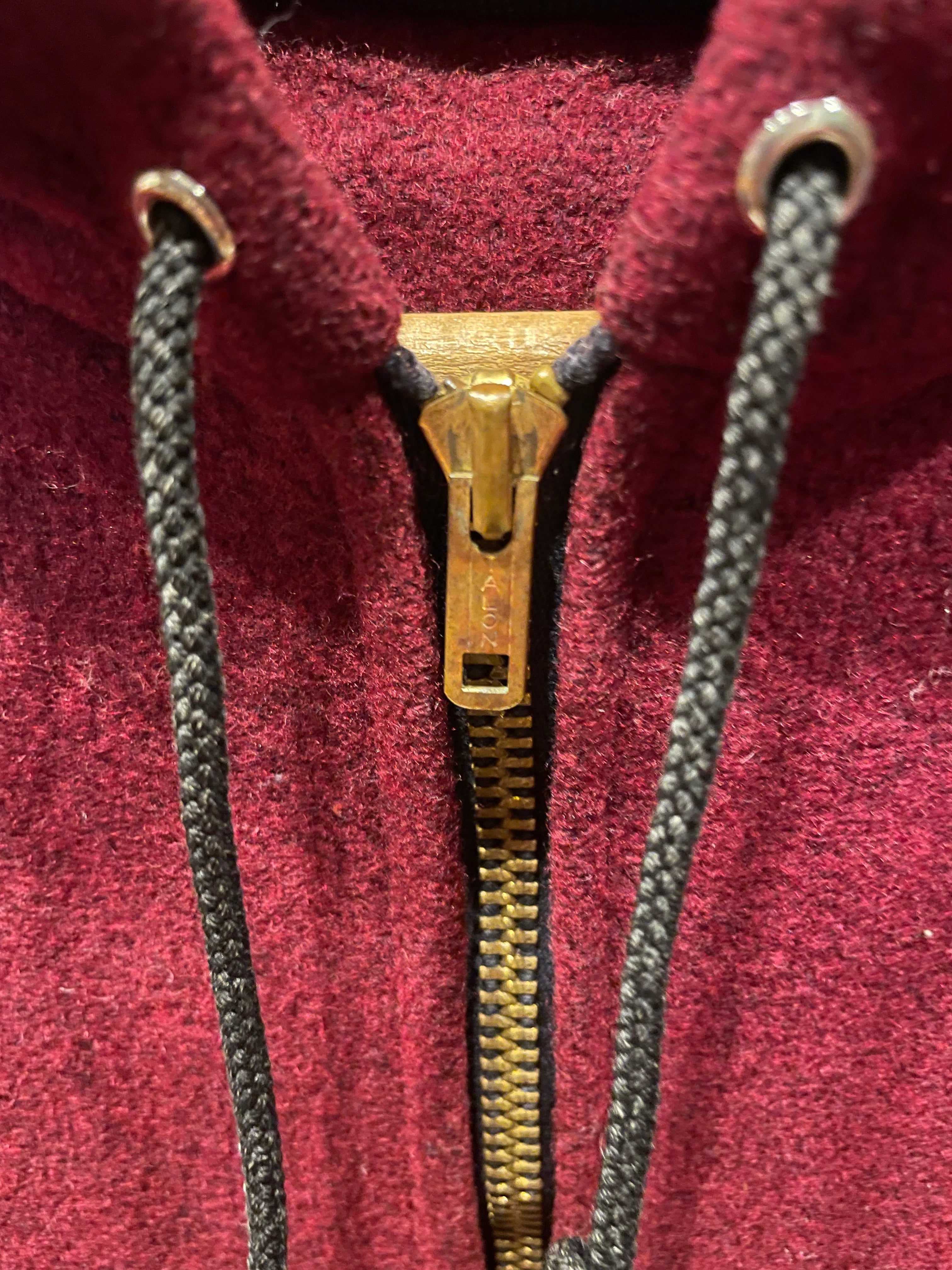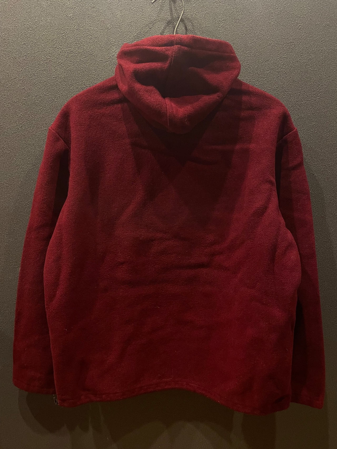 色は、バーガンディになります。目立ったダメージなどはありませんが多少のウールの擦れやウールが薄くなっている所があります。