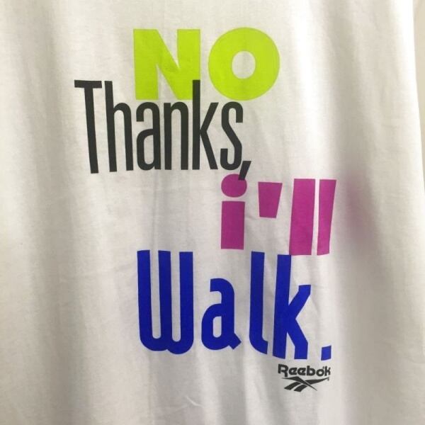 "NO Thanks, I'll walk"と90年代らしい色目でメッセージが入ります。