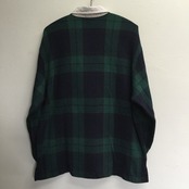 ブラックウォッチチェックのボディに赤いプリントが入ります。