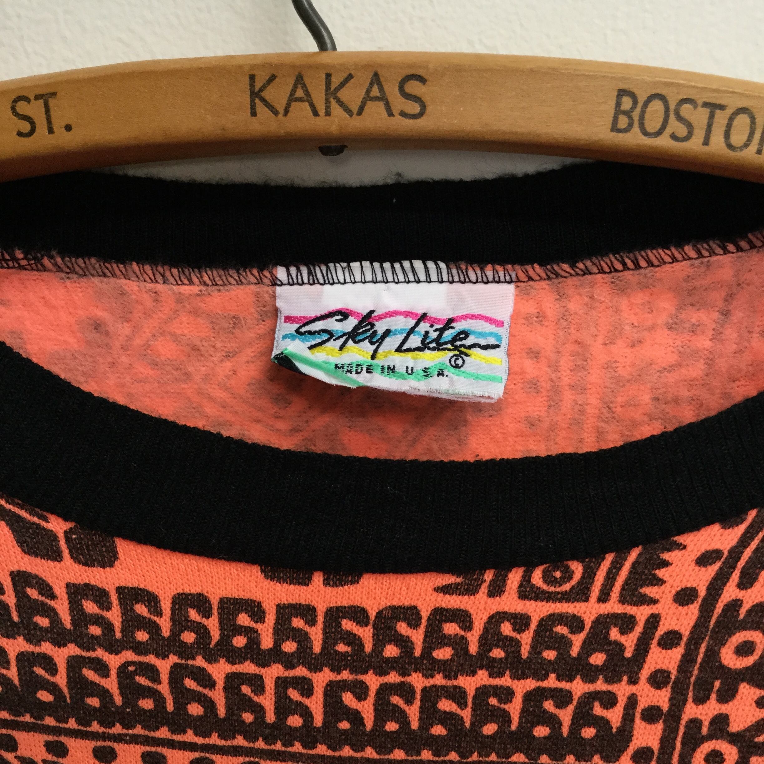 90年代らしい総柄プリントで色もオレンジx黒になります。