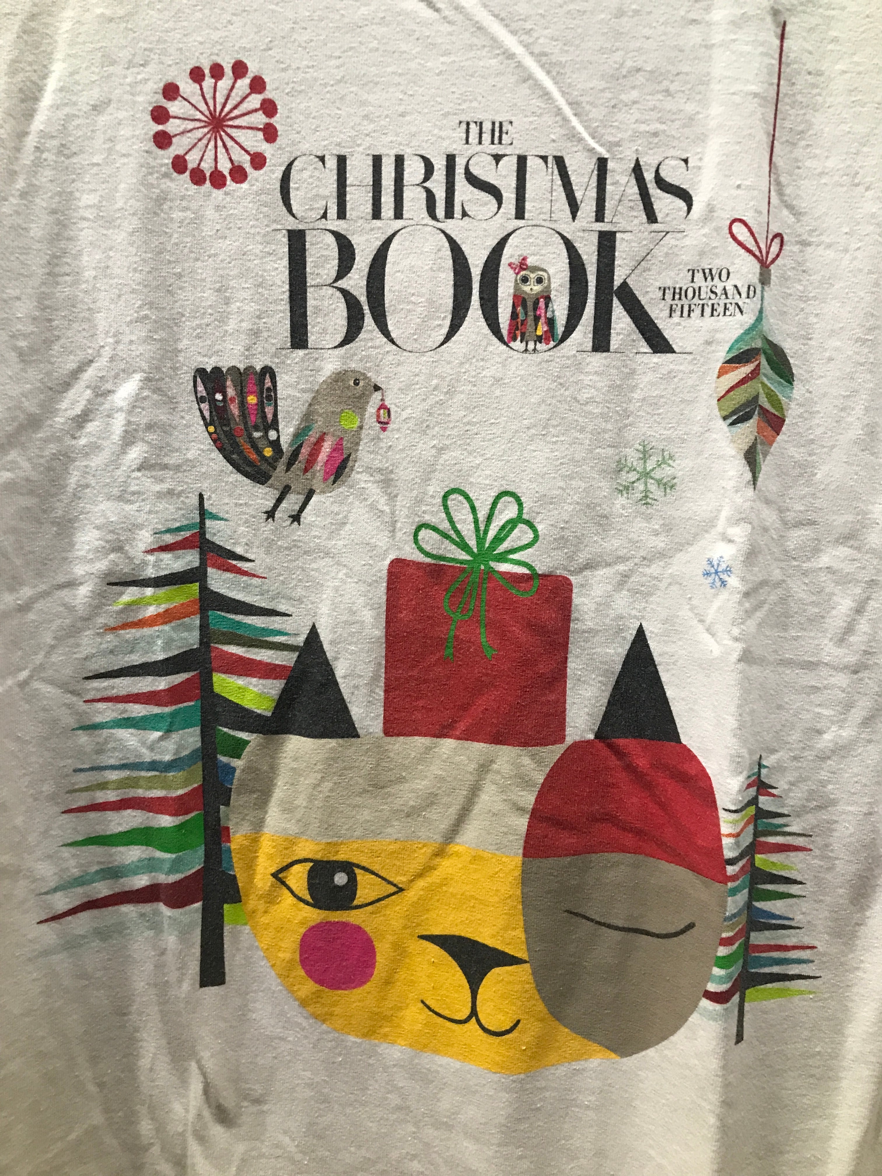 2015年のクリスマスブックのTシャツになります。ミッドセンチュリー風のデザインでネルソンクロックの様な物も描かれています。