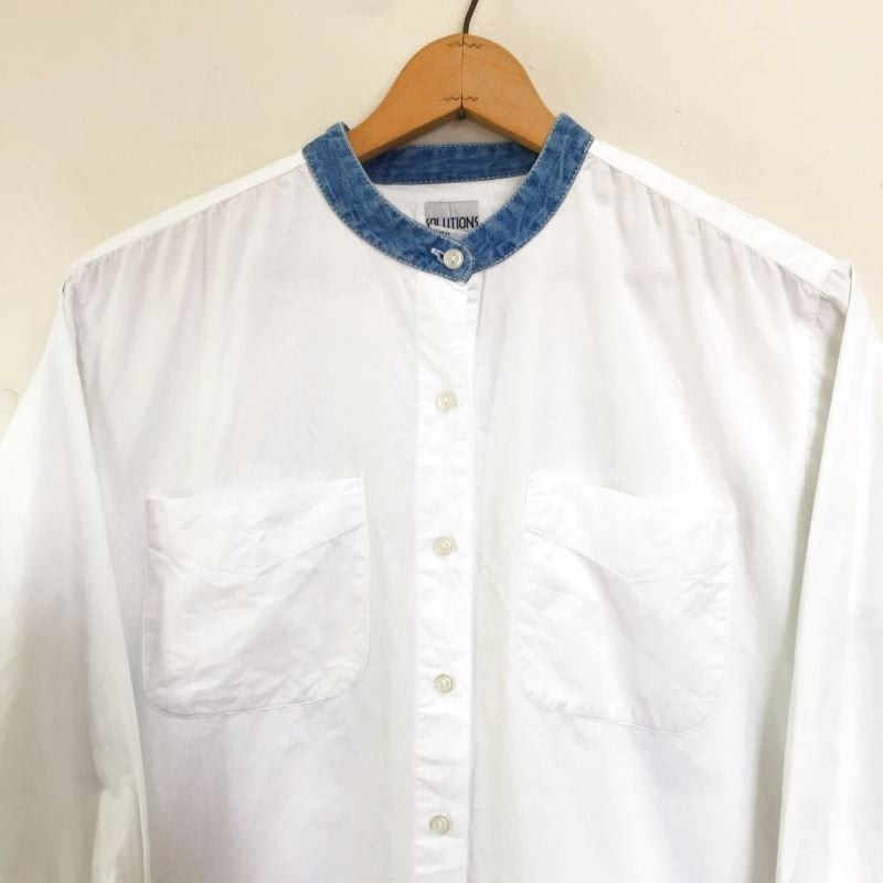 珍しく襟のみデニムのスタンドカラーの長袖シャツになります。