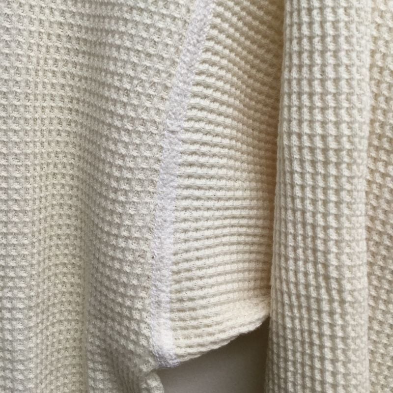 cottonですので、洗濯すると多少縮むかと思いますが、比較的丈が長く今っぽい1枚になります。