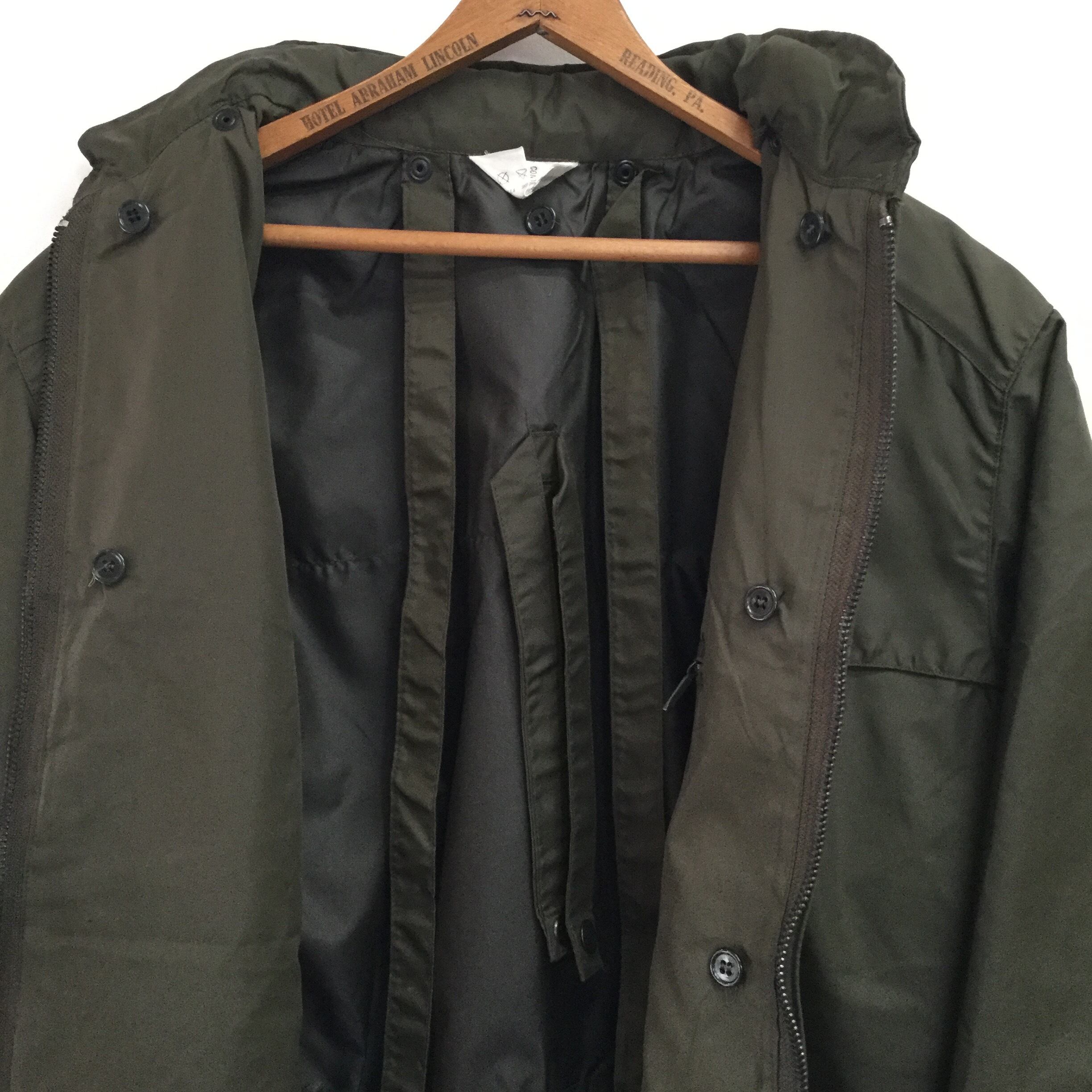 未使用ですが、襟リブには小さな穴がありライナーを取り付けるボタンが1つ欠損しています。
